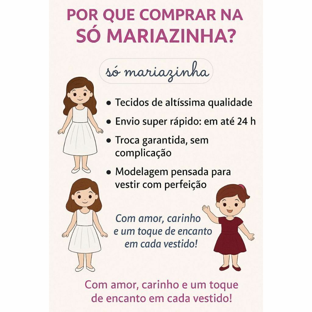 Tecido com zero transparência. A Só Mariazinha tem mais de 43 anos de experiência em vestidos de festa infantil — qualidade e tradição que você pode confiar!